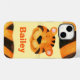 Uma capas de iphone de tigre colorida para crianças tirada de uma pintura original de Sarah Trett. Um caso de tigre giro para amantes de gatos. Personalize com o nome de sua escolha, lendo atualmente Bailey.