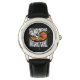Crianças: relógio clássico de couro mostrado a preto com uma impressão de basquete esportivo. Escolha esta monitorização a partir de vários estilos. Personalize este relógio ou comprar como está. Imagem do stock all-free-download.com