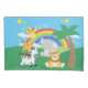 Adicione um tema colorido bonito na selva ao quarto ou berçário do seu menino ou menina com este adorável caso de travesseiro safari personalizado. O travesseiro tem uma zebra, girafa, elefante e leão, todos perto de uma palmeira, um arco-íris, e estrelas brilhantes ensolaradas. O nome do seu filho completou o olhar. Este caso de travesseiro faz um excelente de aniversário personalizado, Natal ou outro presente de Natal, especialmente para crianças pequenas que amam animais!
