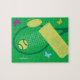 Crianças, tênis, quebra-cabeça. Adicione seu próprio texto engraçado como uma citação, slogan, dizendo, piada ou nome. Festa de aniversário bonita para crianças. Racket, bolas e borboletas.