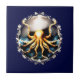 Um polvo gigante de cor ouro é ascensão do fundo escuro do oceano e é enquadrado por um círculo ondulado que é colocado contra um fundo azul escuro que pode ser mudado para qualquer cor de sua escolha. Esse gráfico de conteúdo generativo é ideal para hotéis tropicais, costeiros, marinhos, da frente d'água ou ilhas, resorts, vilas, borras e apartamentos de penthouse que querem adicionar um toque de estilo a suas paredes. Adequado a panelas de cozinha, banheiros ou apenas como um toque de sotaque a uma mesa,