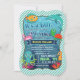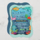 É um menino! Vida marinha super fofa e divertida, chá de fraldas de moças náuticas, convidam em faixas verdes e brancas com cores brilhantes. As criaturas do mar coloridas, aquáticas, cartoon incluem aqua e polvo amarelo, tartaruga-do-mar verde e laranja, golfinho-azul-turquesa, cavalo-de-mar-laranja, caranguejo-rosa claro e coral-de-laranja e-rosa no chão do oceano. Fontes engraçadas parecem estar flutuando debaixo d'água com bolhas sob o oceano ao fundo.