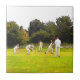 Um simples design de arte de uma partida de críquete de uma vila de domingo à tarde.