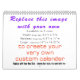 Crie seu próprio calendário personalizado - Fizemos isso TÃO Fácil, basta substituir as imagens por suas próprias, adicionamos que tamanho de imagens você deve usar, dependendo do tamanho do calendário desejado - Faça seu próprio Calendário personalizado - Adicione suas próprias fotos, trabalho de arte ou designs a este Crio Personalizado Seu Próprio Calendário - Adicione texto demais - altere fontes, tamanho e cores de fontes para atender às suas necessidades. Certifique-se de ver as gotas para Cultura, Opções de Feriado, Data Inicial, Tamanho, cor de enlace, etc. todas as opções no lado direito antes de fazer o pedido -