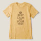 Crie seu próprio design "Mantenha calma e seu texto" para uma mostarda. Você pode mudar a cor esticada do texto e da coroa. Se você precisar redimensionar o texto, poderá selecionar todas as camadas ou elementos de design e alterar o tamanho juntos. Fique Calmo e Edite seu próprio texto.