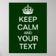 Crie o seu poster pessoal "Mantenha-se Calmo e continue" em um verde-floresta! Vá em frente e preencha o seu próprio texto nas caixas fornecidas e sinta-se à vontade para personalizar conforme desejado (cor de fundo, adicionar imagens, etc.). Excelente para professores - faça um poster personalizado para sua sala de aula! Ou crie seu próprio slogan pessoal para o escritório ou apenas sua mesa. Divirta-se e divirta-se!