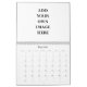 Qualquer calendário para personalizar com as suas próprias fotos - para uma manutenção perfeita durante todo o ano ou um dom precioso. Disponível para qualquer ano e em vários idiomas e configurações de feriados. Lembre-se de selecionar o ano escolhido na barra lateral antes de adicionar ao carrinho.