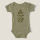 Crie o seu próprio design "Mantenha calma e seu texto" para qualquer estilo de árvore. Você pode mudar a cor da azeitona do texto e da coroa. Se você precisar redimensionar o texto, poderá selecionar todas as camadas ou elementos de design e alterar o tamanho juntos. Fique Calmo e Edite seu próprio texto.