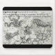 Um design que caracteriza um mapa antigo e muitas criaturas das histórias naturais da Idade Média e do renascimento.