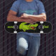 Crocodilo verde engraçado no preto. O texto pode ser personalizado.