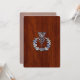 Um cromo prateado como um design de aplicador escocês num fundo de impressão de grão de madeira castanho típico de mogno clássico para um presente personalizado de excelente. Use o link "Perguntar a este Designer" para entrar em contato conosco com suas solicitações especiais de design ou para obter assistência com seu projeto de personalização.