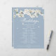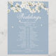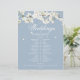 Este lindo cronograma de casamento floral branco pode ser personalizado com os detalhes do seu casamento em tipografia chic num fundo dusty blue. Concebido por Thisisnotme