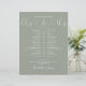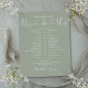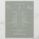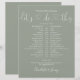 Este cronograma de casamento elegante pode ser personalizado com os detalhes do seu casamento em lettering sofisticada sobre um fundo verde sage. Criado por Thisisnotme©
