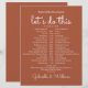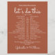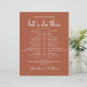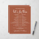 Este cronograma de casamento elegante pode ser personalizado com os detalhes do seu casamento, com letras brancas elegantes em um fundo de terracota. Criado por Thisisnotme©