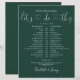 Este simples cronograma de casamento elegante pode ser personalizado com os detalhes do seu casamento em letras modernas sobre um fundo esmeralda. Criado por Thisisnotme©