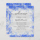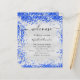 Um fundo prateado falso, decorado com confetes azuis reais, brilhos. Texto preto. Personalize e adicione seus nomes e o programa do casamento.