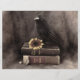 Papel de raspagem Crow Gothic. Livros antigos, girassol floral, academia negra de pássaros negros design do Dia das Bruxas. Este papel de 110 lb pode ser usado para seus projetos de álbum de fotos, artesanato ou desacoplamento que exigem papel mais pesado. A tipografia lê Poções Mágicas Volume 1 e Livro de Ortografia. Direitos autorais da imagem Marg Seregelyi.