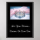 Poster é mostrado com uma impressão de arte fotográfica de uma coroa de rainhas desaparecidas com texto: Viva seus sonhos... Os sonhos se tornam realidade. Personalize este item ou comprar como está. Imagem licenciada