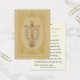 Este reverente cartão de oração fúnebre católico apresenta uma representação solene do Nosso Senhor crucificado, cercado por rosas ouros e florais azuis, com a dolorosa Virgem Maria Abençoada, abaixo, em oração. A imagem está lindamente enquadrada no ouro litúrgico, evocando o sagrado dos Cartões Sagrados de décadas passadas. As costas incluem uma oração memorial personalizável com espaço para o nome e as datas do seu amado. Ideal para acordares, massas funerárias, ou como um guardião espiritual duradouro para a família e amigos. Personalizado por você com o modelo fácil de Zazzle - não é necessária nenhuma experiência de design. Uma maneira comovente de confiar seu amado ao compaixão de Deus e às orações de Nossa Senhora.