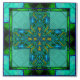 Um design Celtic Cross de vidro brilhante ilustra a arte tradicional da luz de chumbo recriada aqui contra um fundo texturizado. O fluxo de luz através do vidro translúcido cria um brilho de paz e tranquilidade.