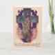 O cartão antiquado mostra uma árvore dentro de uma cruz cercada por violetas, por lírios, e por um pássaro. O 14:6 de John dos versos da bíblia está na parte dianteira: