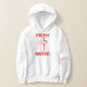 O capuz deste menino tem um design que apresenta as palavras "Baseado na Fé" em uma impressão ousada com letras vermelhas e cruz com um coração no centro neste tema de citação bíblica baseado na fé. Este capuz é feito a partir de uma mistura de algodão de 10 oz, capas de 100% de algodão embutidas na face de algodão e furos de agulha dupla coçados e banda inferior para durabilidade extra tem uma imagem correspondente no verso.