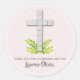 Cruz branca cor-de-rosa sobre verduras folhosas num adesivo de fundo rosa pálido. Design perfeito para a Primeira Comunhão, Batismo, Cristo, Partido Dedicado favorece autocolantes e muito mais. (1) Todos os textos, fontes, cores, tamanhos podem ser modificados, basta clicar no botão PERSONALIZAR. (2) A cor BASE pode ser alterada para qualquer cor na frente e no verso. Disponível em mais cores em nossa loja - clique no link abaixo. Consulte os itens CORRESPONDENTES em nossa loja —> http://bit.ly/2N0rKmh <—