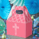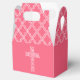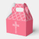 Uma cruz branca de tecelagem aberta sobre um fundo rosa claro de melancia - MUDE PARA QUALQUER COR - e um design de quatrefoil no topo, estas caixas de favores são ideais para a celebração de Natal, Batismo, Dedicação ou Primeira Comunhão do seu filho. Personalize com o nome do seu filho e outros detalhes no verso. Disponível em vários tons de rosa e muitas outras cores ou use nossa ferramenta de seleção de cores para mudar para sua cor perfeita. Consulte Convites CORRESPONDENTES em todas as outras cores pré-fabricadas. —> http://bit.ly/2GSK0No <—