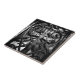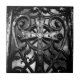 Uma velha cruz celta de ferro, feita a partir de uma porta em uma cripta em preto e branco sobre um azulejo.