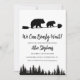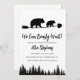 Celebre a chegada do seu filhote com este adorável convite para chás de fraldas de matas. Apresentando uma ilustração encantadora de ursos marrons em um estilo rústico de aquarela, este convite é perfeito para uma celebração inspirada na natureza. Os sotaques azuis e a fonte divertida adicionam um toque de doçura a este design.
