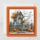 Cuidado e Boo - A Placa de Halloween do Gatehouse Assombrada Uma casa dilapidada fica atrás de um portão marcado com sinais sinistros -"NÃO ENTER!" e "BOO!" - enquanto figuras fantasmagóricas se movem ao redor e morcegos se movem pelo ar. As lanternas brilhantes ralam das sombras, suas expressões entalhadas que vão desde brincadeiras até ameaças. Acima da casa, exclamações ousadas como "EEK!" e "BOO!" fazem eco do susto festivo, enquanto "BEWARE!" ancora a cena em um aviso ousado e espectral. A composição combina um capricho assustador com charme assombrado, capturando o espírito malicioso de Halloween num momento de convite estranho.