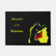 Este tapete de porta engraçado vai divertir seus convidados. Este tapete é decorado com nossa foto original de um cachorro amarelo feliz (de forma alguma assustador!). O texto padrão é "Cuidado com os Humanos", mas você pode personalizá-lo facilmente - talvez você queira adicionar seu nome! Um ótimo presente para um casamento ou mudança, especialmente para amantes de cães. Fácil de manter. Todos os Direitos Reservados © 2015 Alan & Marcia Socolik.