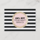 IMAGEM digital espumante de sequências de ouro contra fundo listrado preto e branco. emblema do círculo central da rosa claro. Cupão de presente ideal de 20% OFF para salões de beleza, spas, cosmetólogos, estéreis, butiques, designers, estilistas de cabelo e moda ou qualquer outro profissional sensível à imagem. Personalize facilmente 20% OFF para 15% OFF ou o que você quiser.