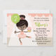 O holofote está em sua pequena bailarina enquanto ela pula pelo ar segurando um cupcake em uma mão e um balão na outra. Estes convites de aniversário fofinhos e verdejantes podem ser personalizados com o nome e a idade da aniversariante no balão. Trabalho de arte © Chrissy H. Estúdios, LLC. Todos os direitos reservados.