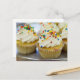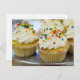 Cartão postal com cupcakes de baunilha com borrifagens coloridas.