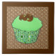 Azulejo cerâmico - Cupcake com glacé de menta verde revestido com caramujos de chocolate, num invólucro decorativo e fractal verde, sobre fundo de espiral castanho e bege