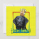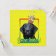 Convide seus convidados com este cartão branco de saudação de cachorro preto Labrador. Com um cupcake balanceado na cabeça, este design certamente trará um sorriso e risos! BTW, Este design tem várias versões, com cores de fundo diferentes. Há também uma versão de Feliz Aniversário.