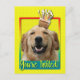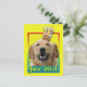 Convide seus convidados com este Cartão de Saudação de Cachorro de Retriever de Ouro caprichoso. Com um cupcake balanceado na cabeça, este design pode trazer um sorriso e risadinhas! BTW, Este design tem várias versões, com diferentes cores de fundo. Há também uma versão de aniversário feliz.