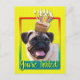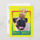 Convide seus convidados com este Cartão de Saudação Cachorro Cachorro. Com um cupcake balanceado na cabeça, este design pode trazer um sorriso e risadinhas! BTW, Este design tem várias versões, com diferentes cores de fundo. Há também uma versão de aniversário feliz.
