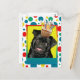 Convide seus convidados com este Cartão de Saudação Cachorro Cachorro. Com um cupcake balanceado na cabeça, este design pode trazer um sorriso e risadinhas! BTW, Este design tem várias versões, com diferentes cores de fundo. Há também uma versão de aniversário feliz.