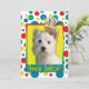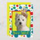 Convide seus convidados com esta medíocre Carta de Saudação de Cão Terrier West Highland. Com um cupcake balanceado na cabeça, este design pode trazer um sorriso e risadinhas! BTW, Este design tem várias versões, com diferentes cores de fundo. Há também uma versão de aniversário feliz.