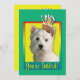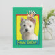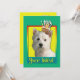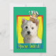 Convide seus convidados com este cartão ocidental lunático do cão de Terrier das montanhas. Com um cupcake equilibrado nela é a cabeça, este design é certo trazer um sorriso e risos! O BTW, este design tem diversas versões, com cores diferentes do fundo. Há igualmente uma versão do feliz aniversario.
