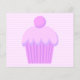 Uma bonito imagem de cupcake rosa com um fundo de listras finas em rosa pastel. Um design de comida de estilo feminino. Este bolo tem gelo e um doce no topo.