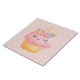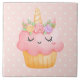 Azulejo cerâmico com desenho de aquarela de um cupcake com gelo cor-de-rosa, um chifre unicórnio e rosas coloridos.