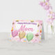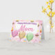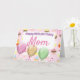 Cartão de aniversário cor-de-rosa coberto por balões e cupcakes e um dentro de mensagem mutável.