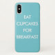 Esta capas de iphone de turquesa é decorada com o ditado bonito, coma CUPCAKES para o CAFÉ da MANHÃ, fazer-a como o presente feminino perfeito.