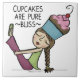 Para o amante do cupcake: uma design fofa de uma garota com um cupcake grande na cabeça enquanto ela se senta em uma pose de barco estilo ioga. As cores acrescentam a este doce design. Design original é de Christie Black of Creations do Coração.
