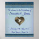 Um lindo Cupido dourado no Coração enfeita este Poster de Boas-vindas do Casamento, com um fundo de efeito pergaminho azul suave, e ouros elegantes e faixas. "Bem-vindo ao Casamento de" "Noiva e noivo" "Data" "Obrigado por nos juntar" Todo o texto é totalmente editável - Tenha cuidado para verificar cuidadosamente se todos os detalhes estão corretos antes de concluir sua compra. Planejamento de Casamento Feliz x