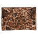 Estampados com desenhos de fita curvos e sobrepostos entre si, e com algum tipo de pequenos entalhes ou arranhões alinhados, mas essa imagem sofreu uma mudança de efeito que destaca suas linhas e bordas e, assim, as formas curvas do desenho parecem ter algum alivio, com um toque de marrom ou marrom em formatos que se parecem com 'recortes acrílicos'. Ele ganhou uma descoloração de outras cores e um solteiro 'banho de cor', é a única versão marrom. Se você, pelas opções no site, ampliar a imagem, movê-la ou usar filtros de cor, você pode obter um visual próprio e tão interessante quanto... porque você pode escolher as partes das curvas que mais o atraem, que são mais curvas ou mais sobrepostas.