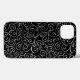 Curvas brancas de rolagem pintadas à mão encontram-se e divergem nesta design de repetição em todo o lado sobre um fundo preto. A pintura de na moda é decorativa e fluente de graça. Pintura em aquarela, digitalizada, aprimorada digitalmente. Copyright © 2014 Claire E. Skinner. Todos os direitos reservados.